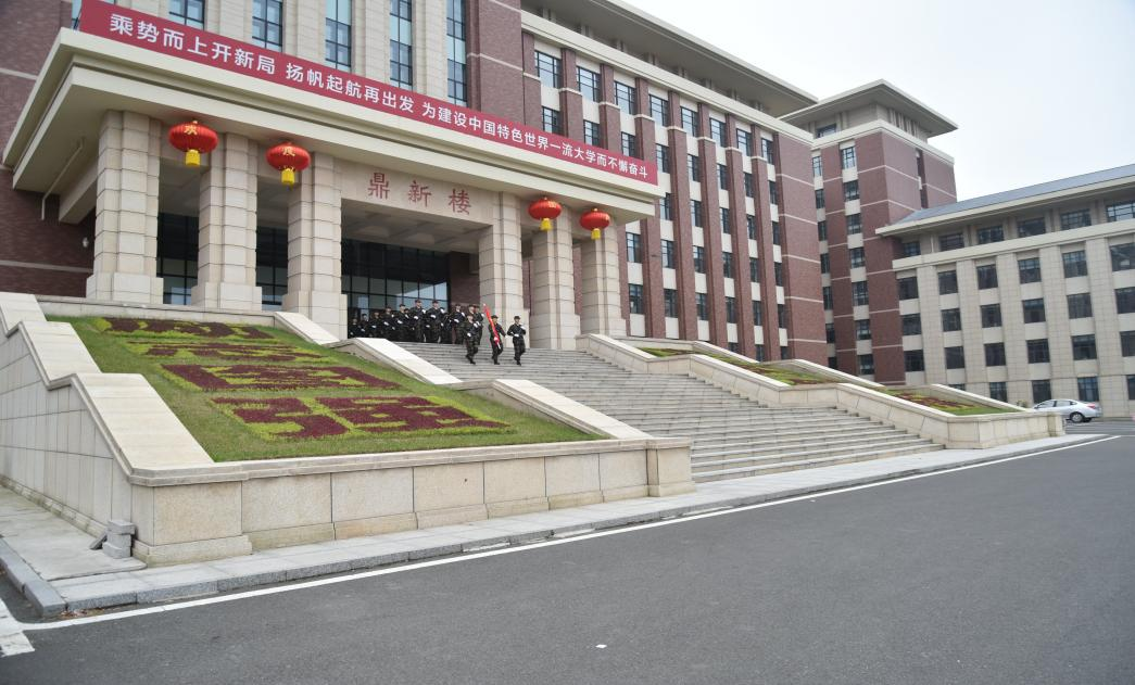 师生代表在中心校区鼎新楼北侧广场举行升旗仪式。在学院的组织下,探花
