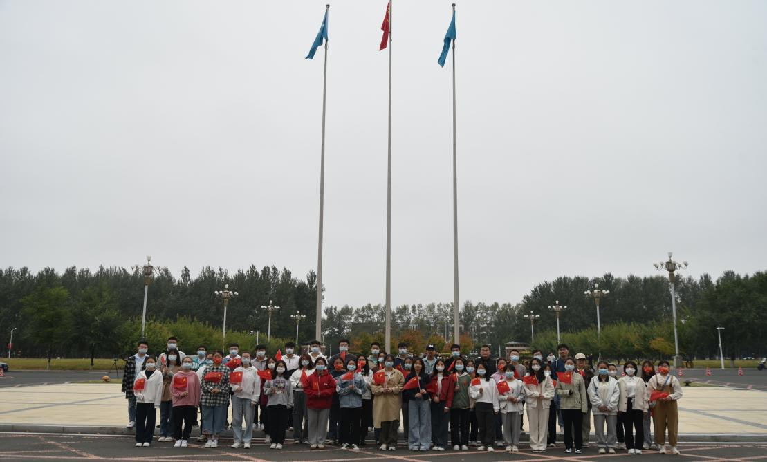 到场人员共同挥舞起提前准备好的国旗,衷心祝福伟大的祖国生日快乐。仪式结束后,22级新生代表在飘扬的国旗和校旗下合影留念。