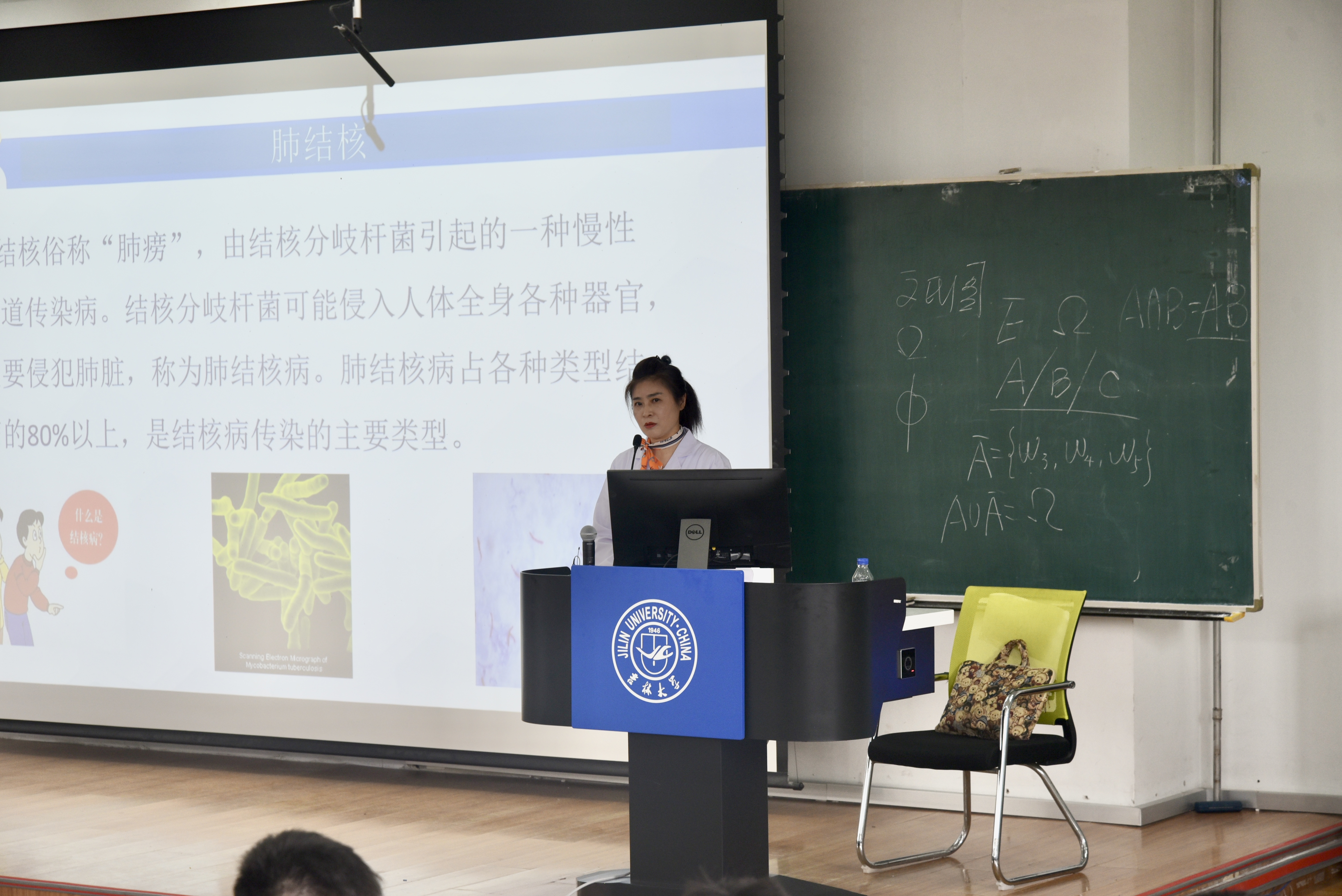 校医院大学生健康教育教研室主任阚宁老师向同学们介绍了校医院的概况与基本职能,使同学们了解了校医院在未来生活中的重要作用。随后,就有关新生医疗证和医保卡的使用问题,向同学们进行了说明,并讲述了校医院的医院转诊报销制度。阚宁老师从高校大学生面临的健康问题入手,介绍了健康教育课的主要内容、目的、意义与课程安排。还就如何防治常见传染病、疫情期间学生在校的自我防护知识、艾滋病的传播途径及临床症状、患肺结核的特点等进行了讲解。