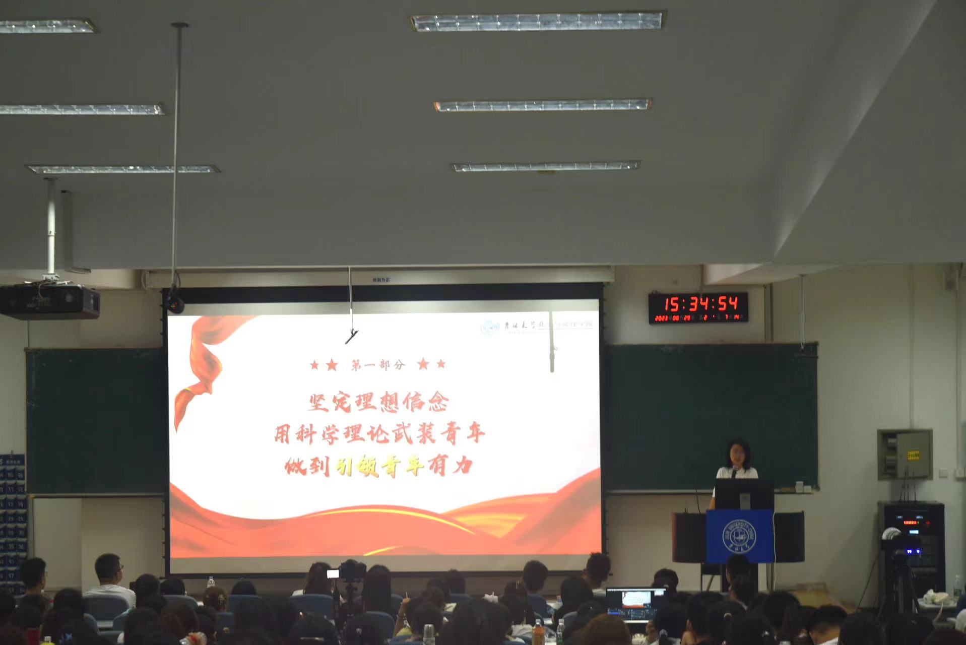 团委书记兼2020级本科学生辅导员刘天目老师于2023年8月29日在三教第一阶梯教室对2023级新生进行了入学第一次团课的讲解。