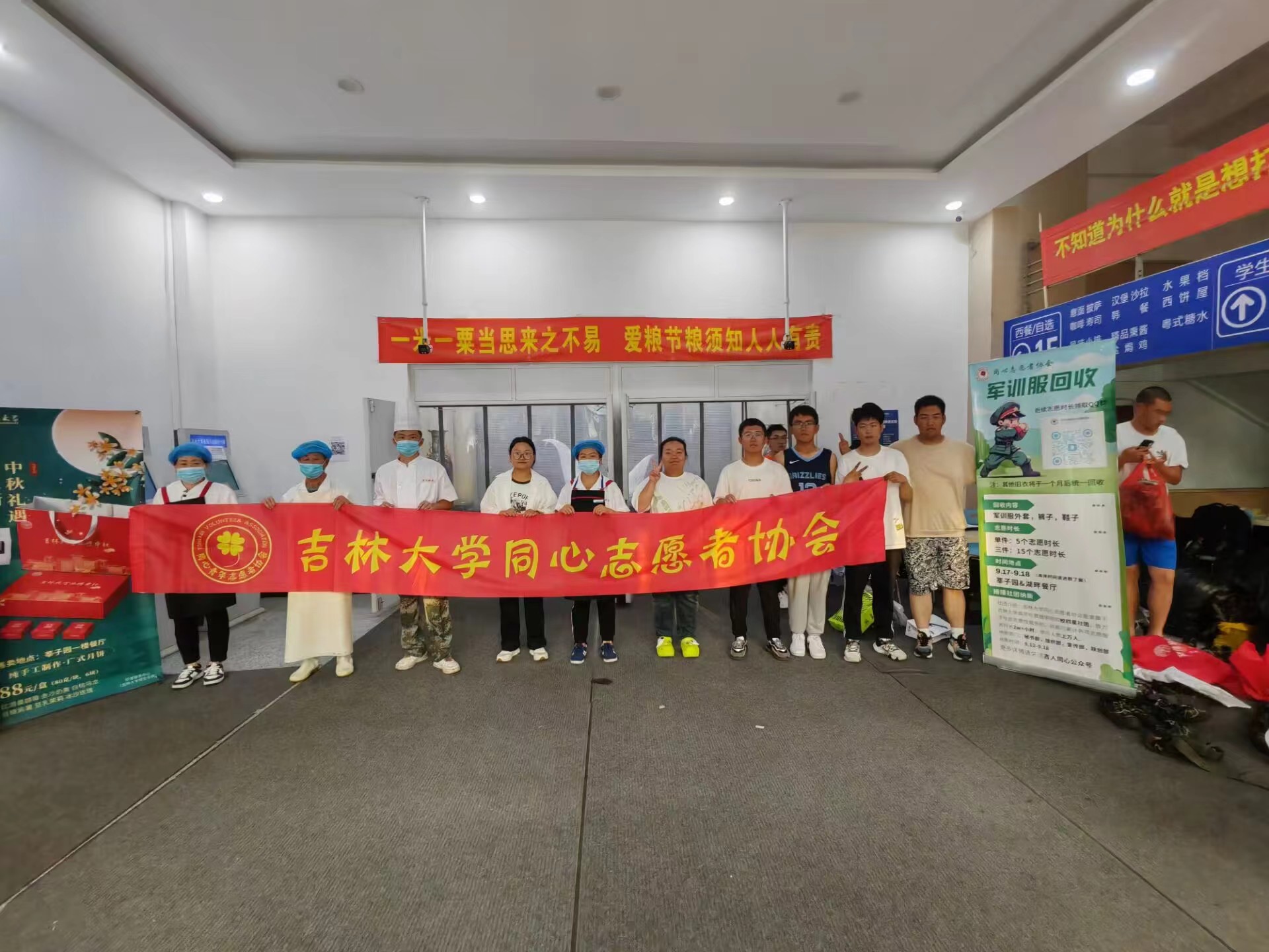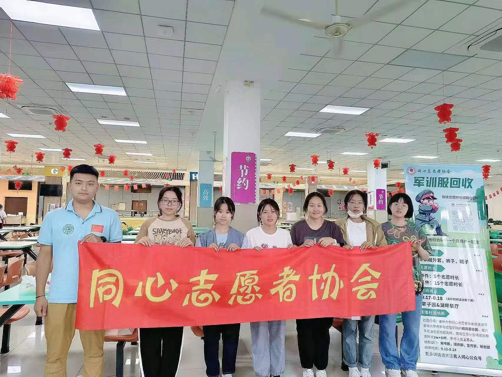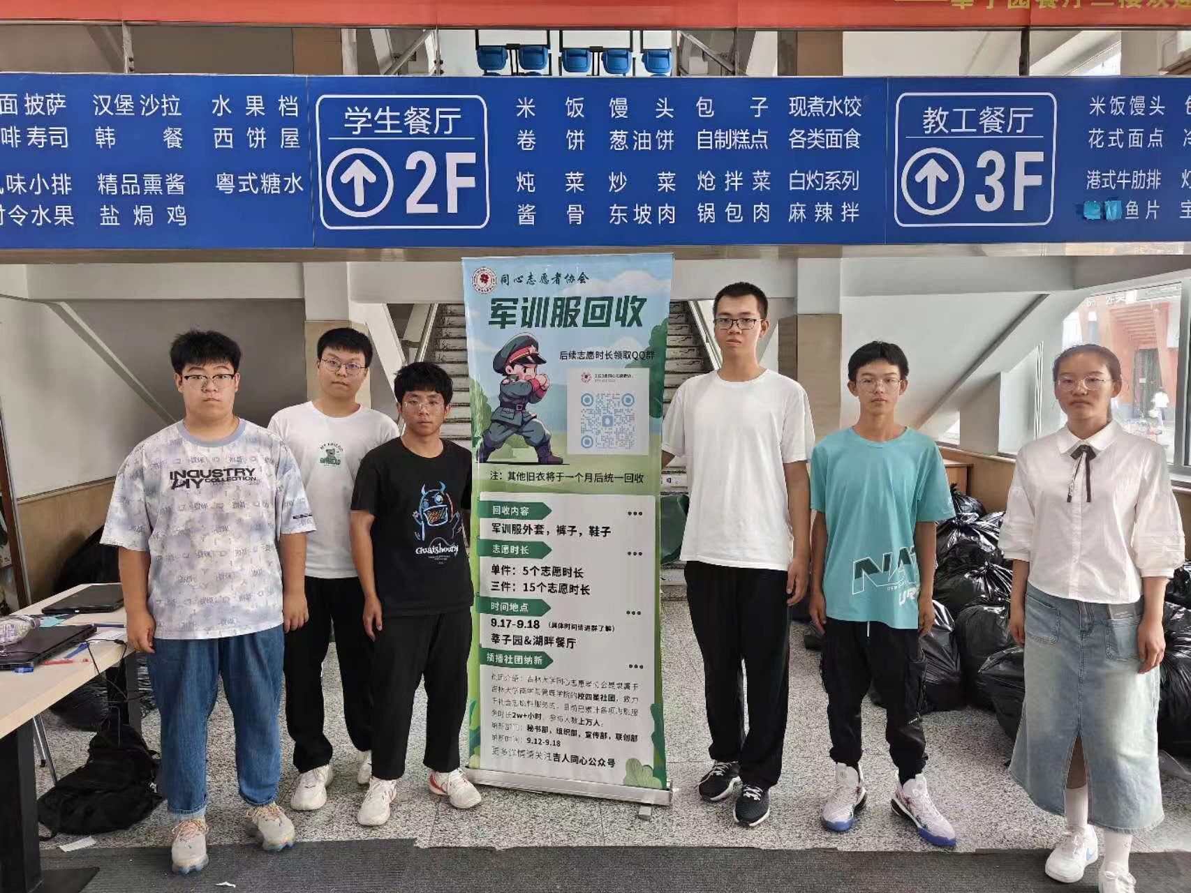 同心志愿者协会于2023年9月16日至9月17日在翔远餐厅、莘子园餐厅以及湖畔餐厅举行了军训服回收活动,将回收的军训服捐赠给食堂的工作人员。