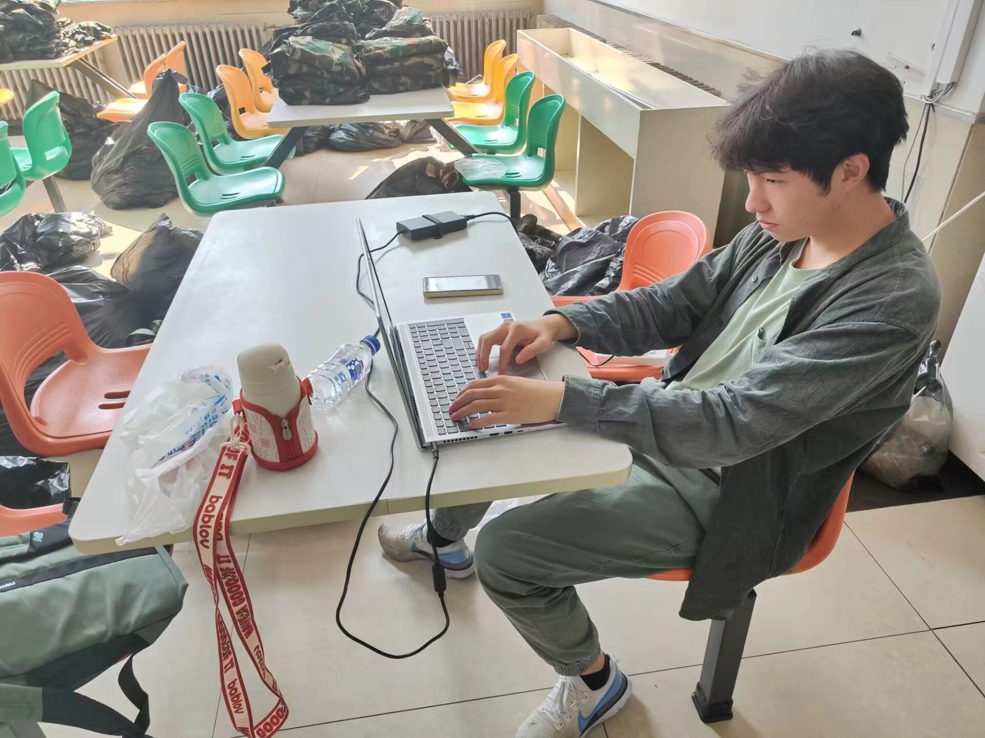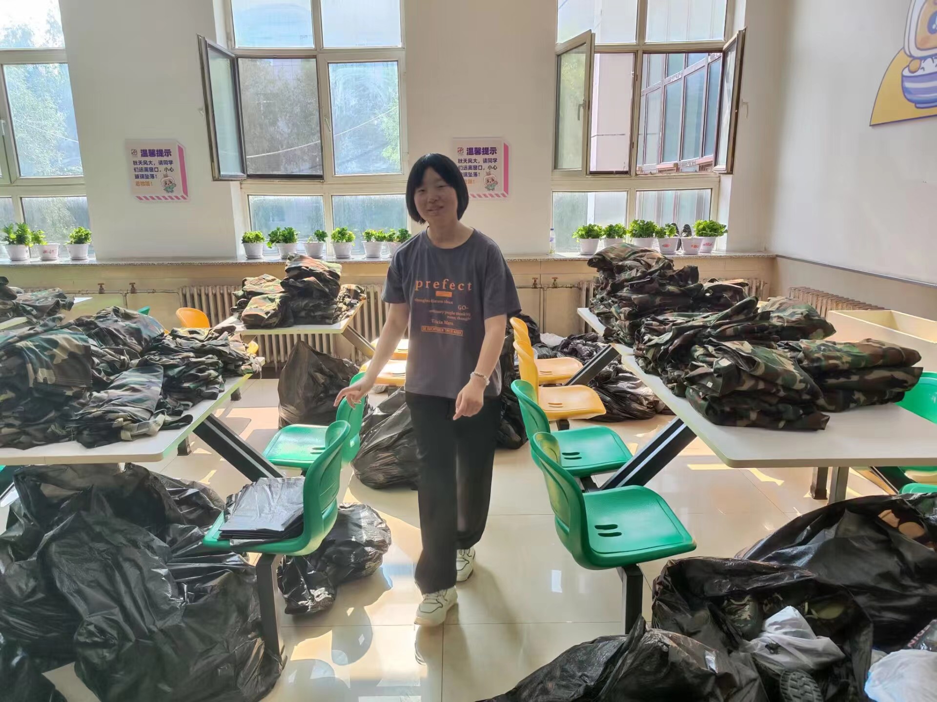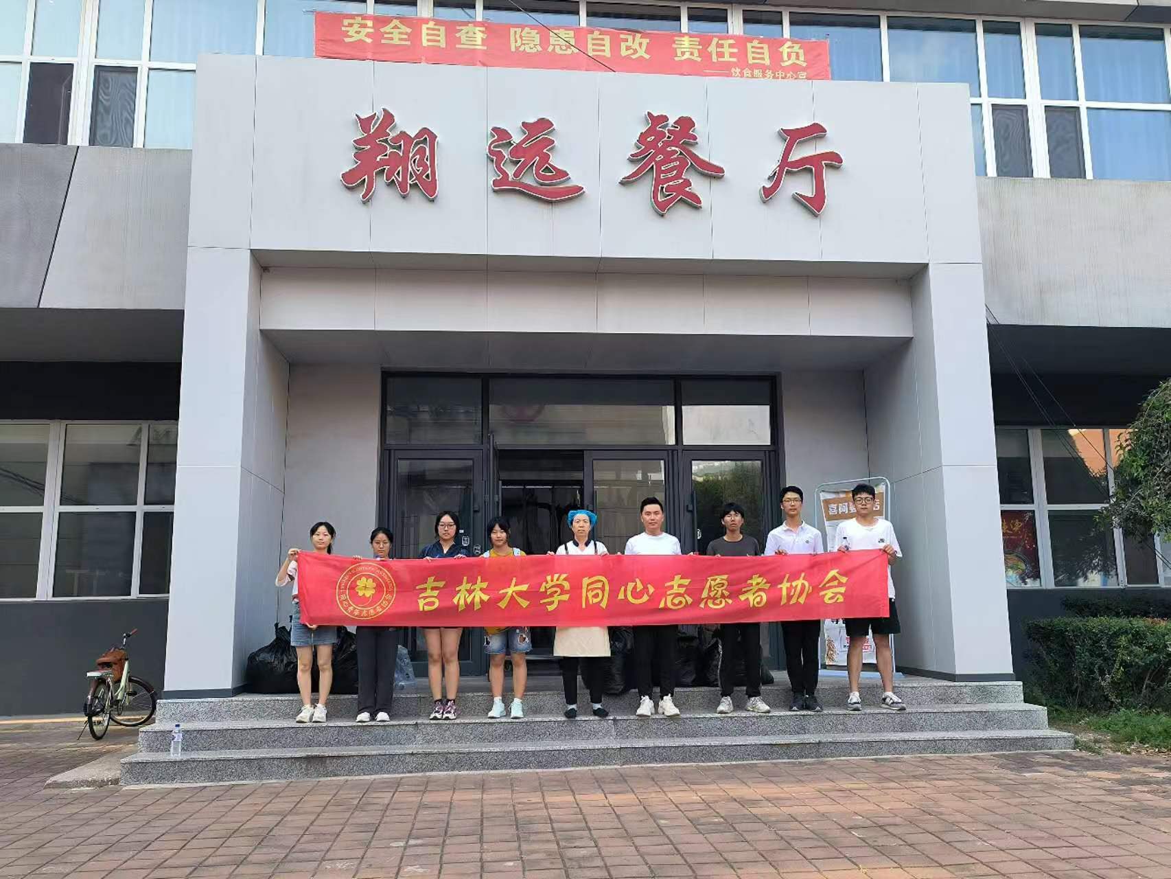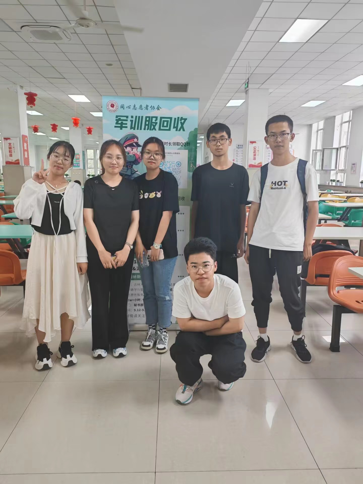 同心志愿者协会于2023年9月16日至9月17日在翔远餐厅、莘子园餐厅以及湖畔餐厅举行了军训服回收活动,将回收的军训服捐赠给食堂的工作人员。