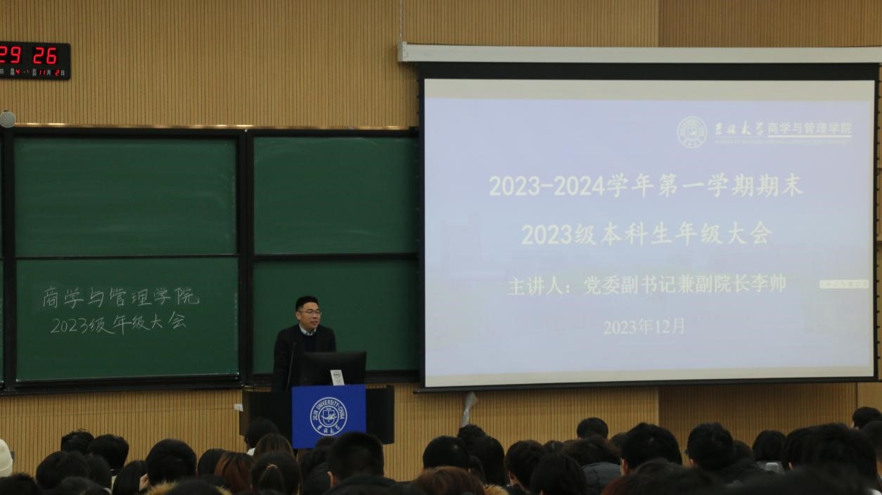 分别于2023年12月14日和12月15日的13:30,在敬信楼F区第一阶梯教室,召开2023级本科生年级大会。会议由2023级本科学生辅导员刘翔宇主持,探花