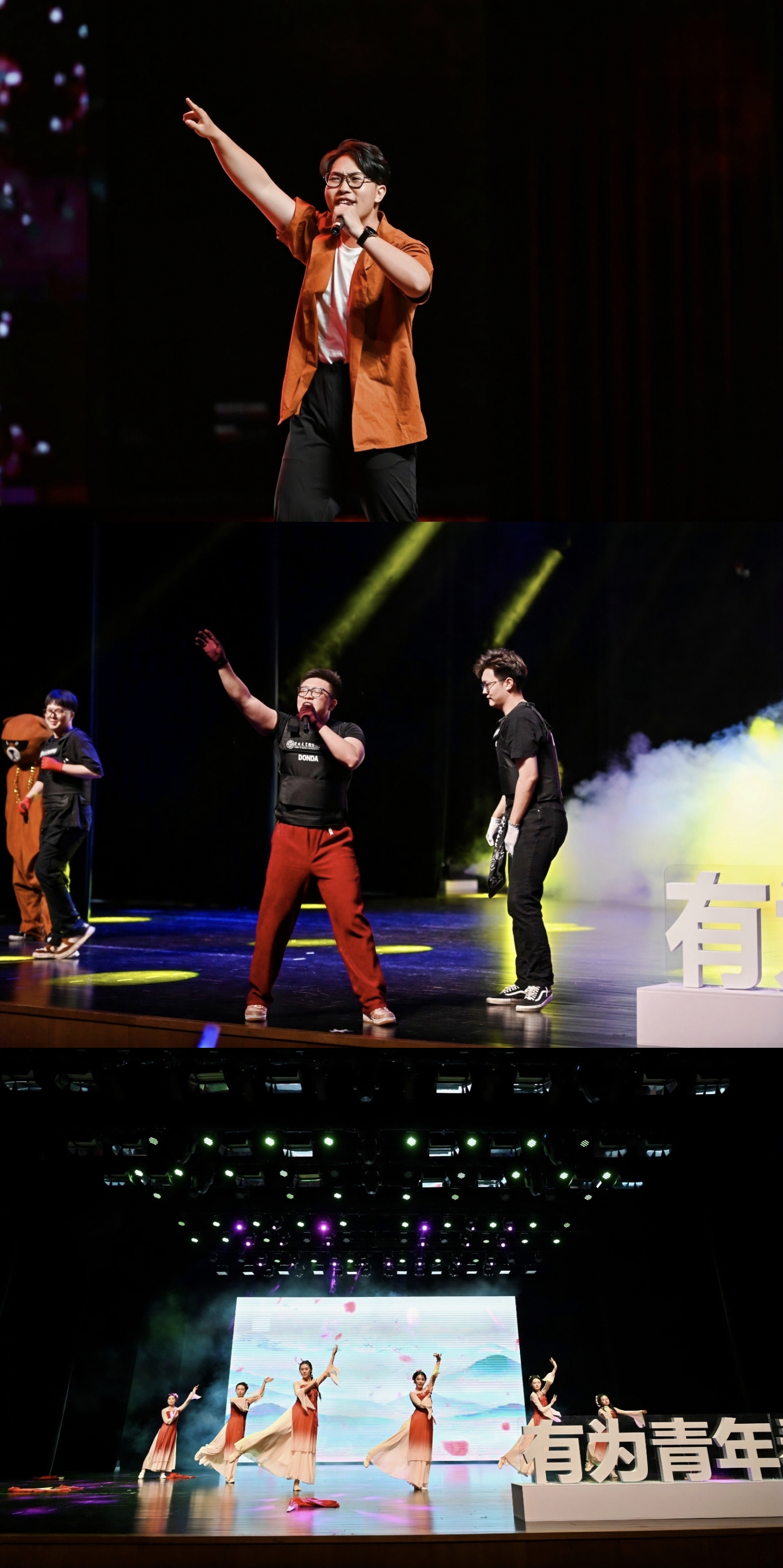 云程发韧,行远自迩。岁月因青春慨然以赴而更加美好,世间因少年挺身向前而更加瑰丽。节目未.LIVE-[开往2020],以歌曲串烧的形式,诉说了一路的荆棘,更展现了对未来的憧憬;接下来的说唱串烧了《迷途羔羊》《勒是雾都》《未来是你》歌曲,台上肆意说唱的他们像极了曾经的少年青春的模样,令人神往;舞蹈《舞墨流云》由研究生进行表演,意境优美,情感真挚,让人乐享视觉与听觉上的绝妙体验。