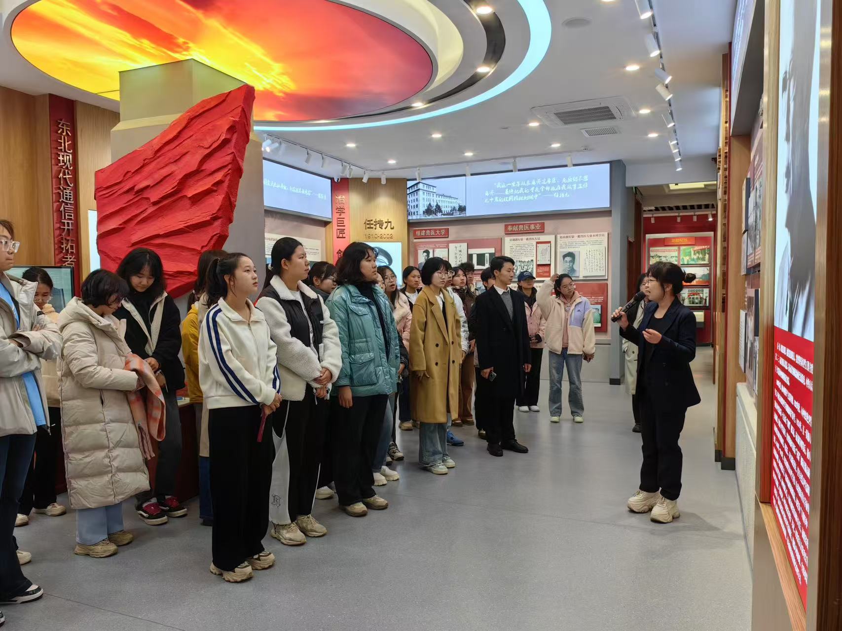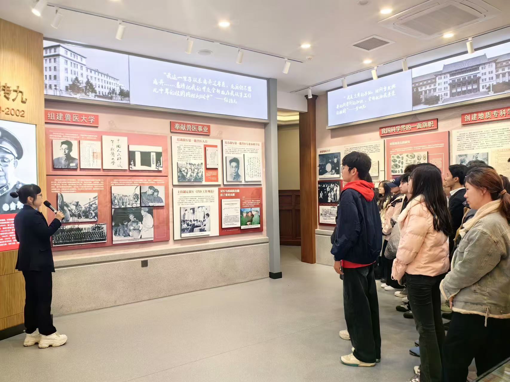 建校发展所做出的卓越贡献。通过参观序厅、“六校肇始 为国而生”、“高瞻远瞩 强基铸魂”等多个展厅,观看文献资料、文物展览,同学们深刻感悟到了如林枫、饶斌、江一真、李四光、陈先舟、任抟九等先贤学者一路向北,扎根东北的北上精神。同学们认真观看展览讲解,边走边看,边学边思,不时驻足讨论分享,切身感受着探花