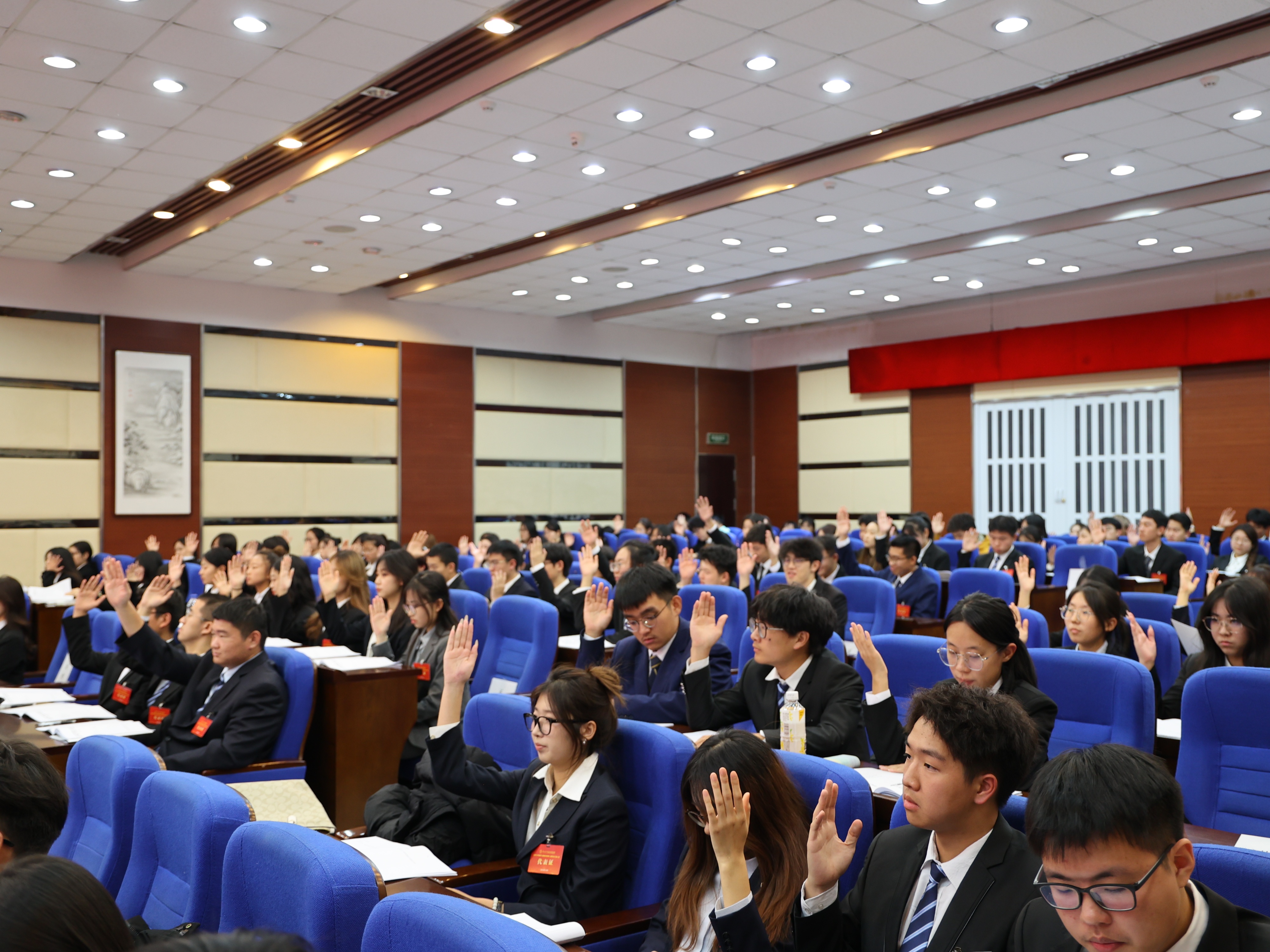第三届学生会主席团成员刘家邦所作题为《在创新发展中彰显新征程的青春风采,在矢志奋斗中谱写新时代的青春之歌》的工作报告,审议并通过了提案工作报告、第四届学生会主席团选举办法、总监票员、监票员、总计票员、计票员名单和第四届学生会主席团候选人名单。