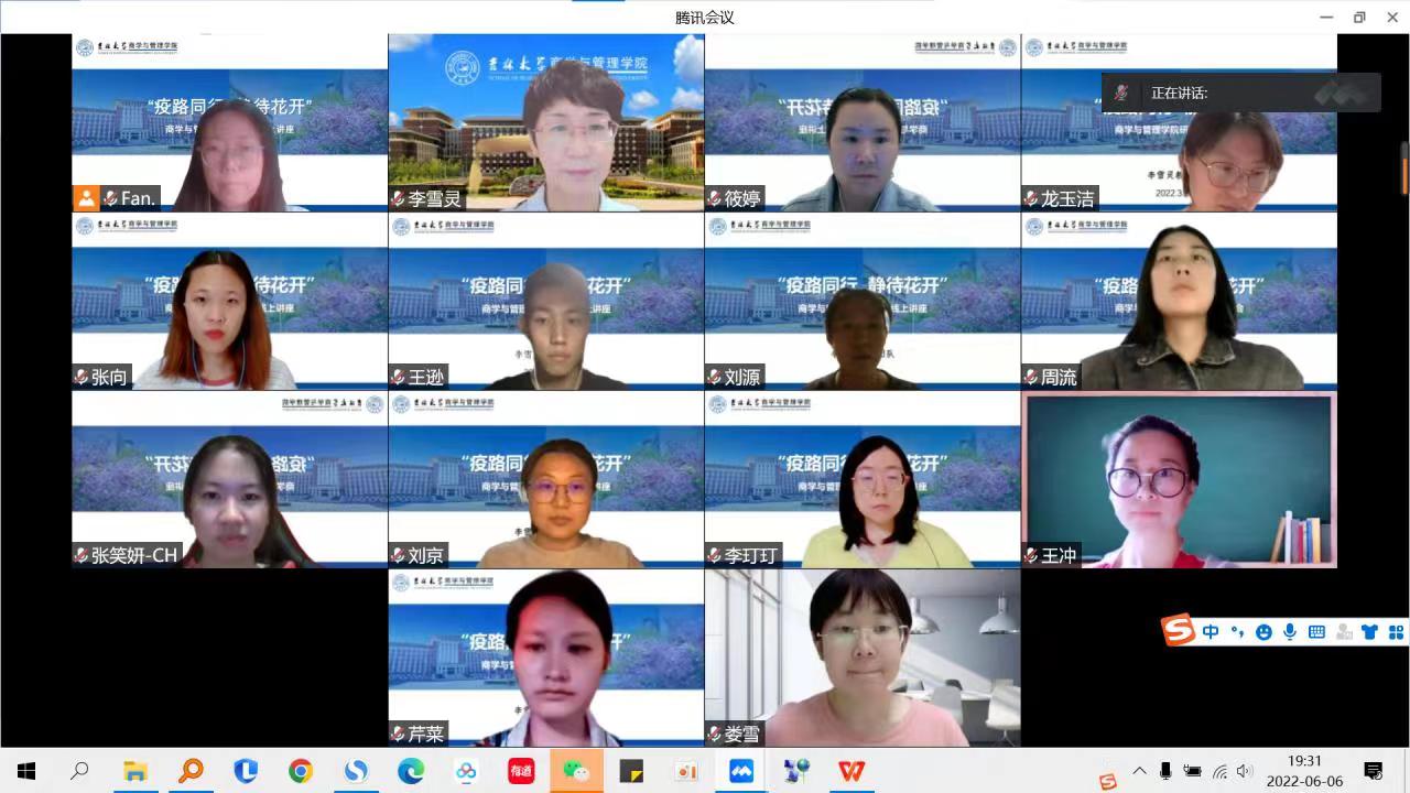 组织了“助推人才培养,践行科研育人”主题系列活动。6月6日晚,李雪灵教授召开线上研讨会,博士生龙玉洁、樊镁汐、张向、王逊、张笑妍等参加会议。