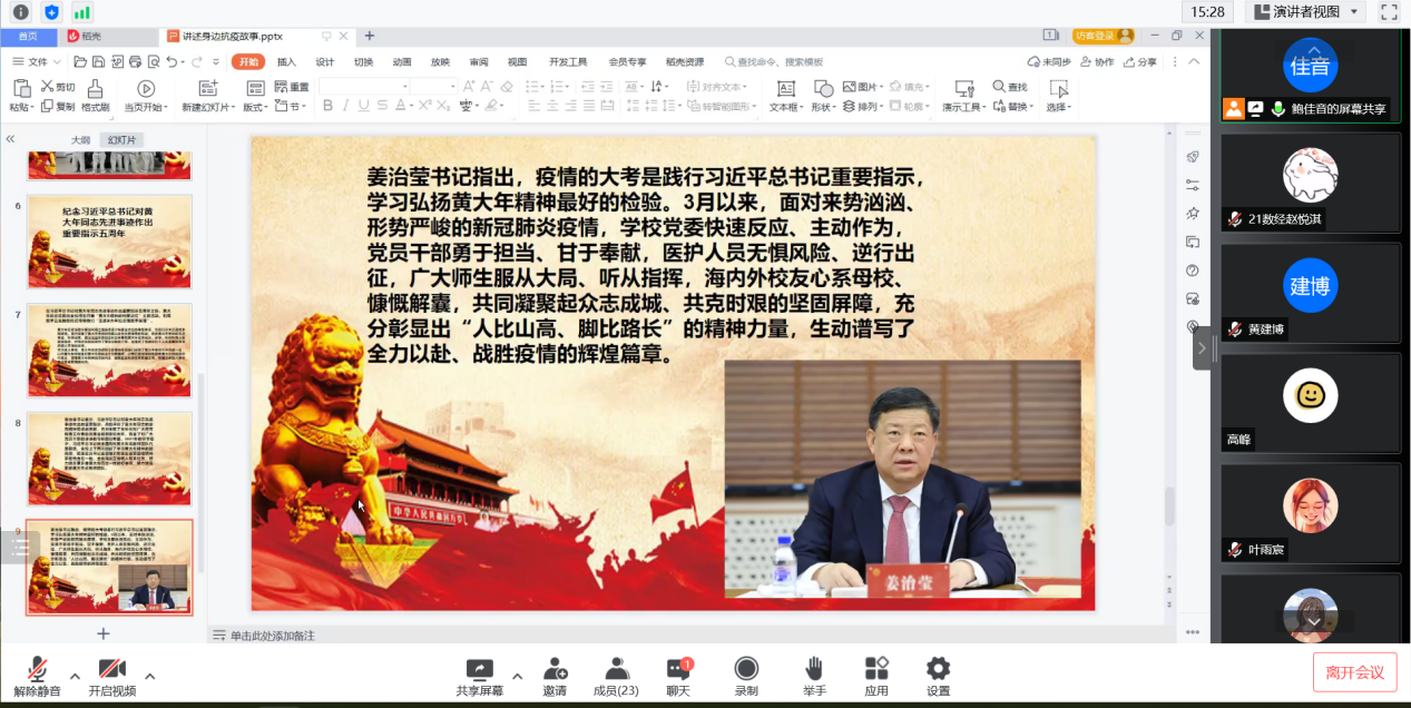 硕士研究生第一党支部在线上开展“学习黄大年精神”暨“讲述身边抗疫故事”系列主题党日活动。探花