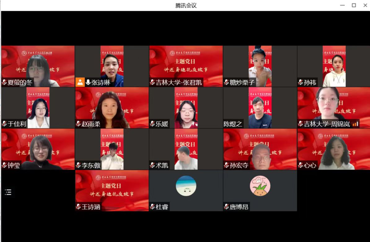 博士研究生第三党支部在线上腾讯会议室开展了以“学习黄大年精神”暨“讲述身边的抗议故事”为主题的党日活动,鼓励支部党员认真学习“黄大年精神”,积极投身于抗击疫情的工作中,坚守初心共同抗疫。