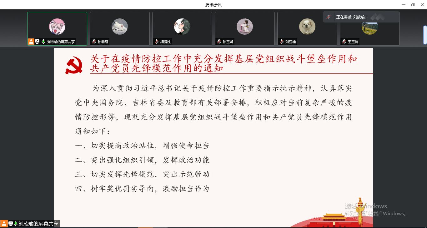 为肯定党员对抗疫做出的贡献,鼓励党员继续积极抗疫,硕士研究生第三党支部于4月28日在线上腾讯会议室开展了以“勇战疫情做先锋,我是党员我先行”为主题的党日活动。