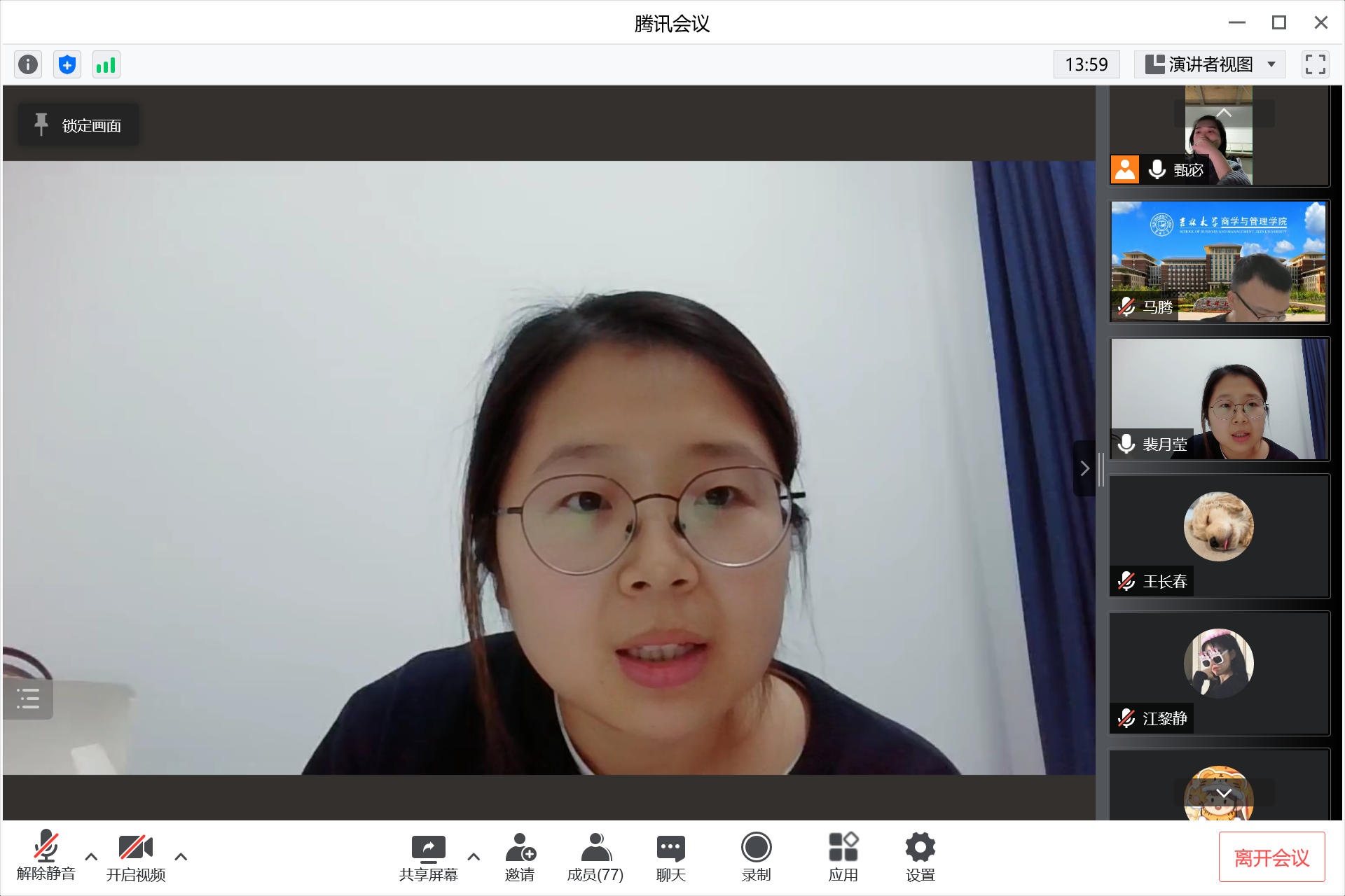 为响应学校号召,做好全面疫情防控阻击战,于2022年3月17日进行了线上研究生防疫工作交流会。学院党委副书记马腾老师/辅导员甄宓老师、裴月莹老师主持本次会议,全体研究生德育助管、研究生学生干部及研究生寝室楼楼长共同参会。