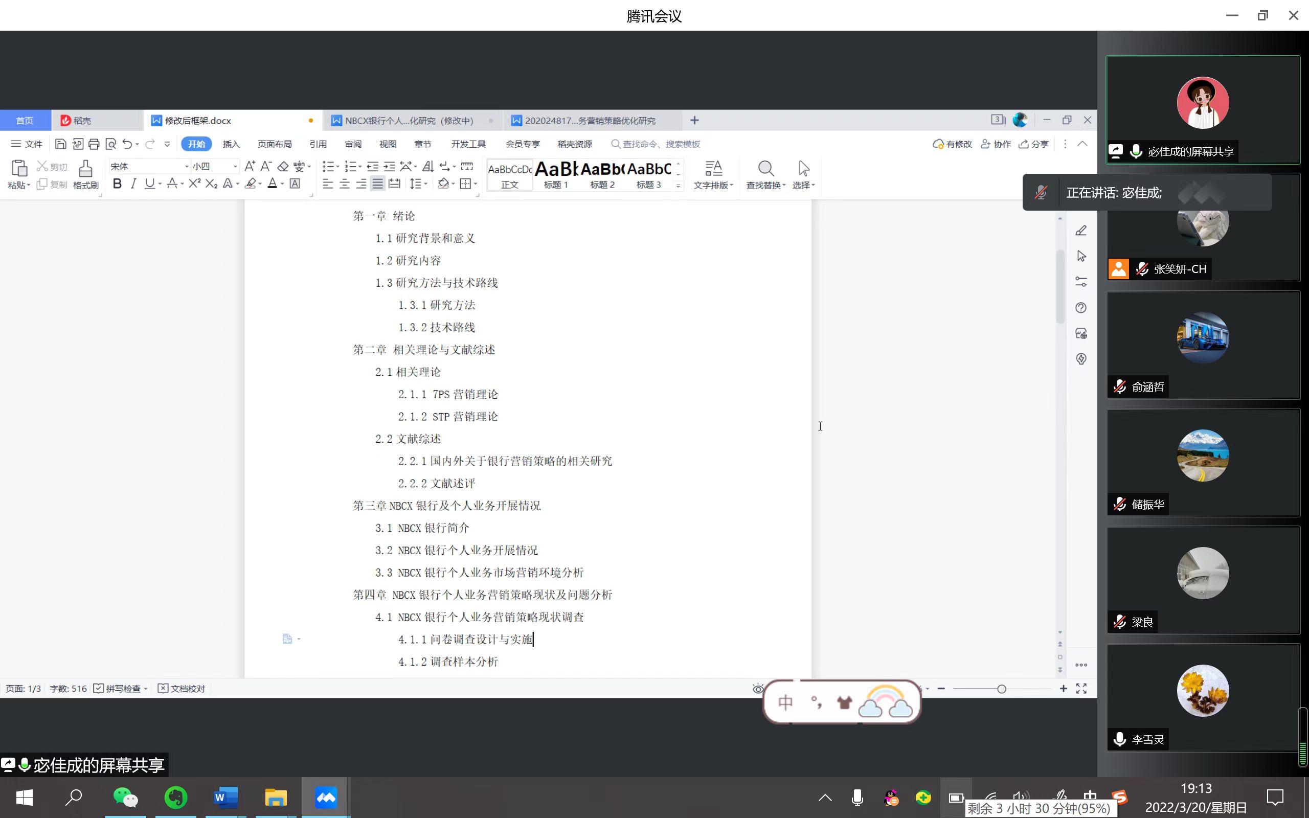 李雪灵教授组织开展了2020级MBA专业硕士生预答辩线上总结交流会,师门成员梁良、储振华、俞涵哲和宓佳成共同参会。