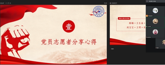 随后,几位参加了志愿者工作的同学也分享了自己工作期间的感受。王长春表示,疫情打破了原有的平静,口罩挡住了大家的面容,但却没能挡住我们对生活的热爱,作为党员,在这个特殊时期能够服务大家,他所感受到的是满满的幸福。金庆泽表示,学校全力以赴确保了同学们封闭期间的饮食,校友和社会各界也向吉大传递爱心,而封闭在校内的党员,就更需要做些什么去减小疫情给同学们带来的影响。韩精滢表示,封闭在宿舍,虽然每天不能够外出,但是志愿者服务工作却让自己更加充实,每天穿梭在走廊内,运动步数的霸榜是自己最好的表彰。路畅表示,通过志愿者服务工作,自己深切地感受到平静的生活和充足的供给背后,是有那么多人的辛苦付出,与保洁阿姨互道的辛苦,是对心最温暖的补给。