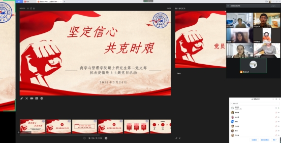 3月24日,硕士研究生第二党支部开展抗击疫情线上主题党日活动,在本轮疫情封闭十数天后,通过一次别样的线上活动来纪念党员志愿者的身影,学习他们的奉献精神。