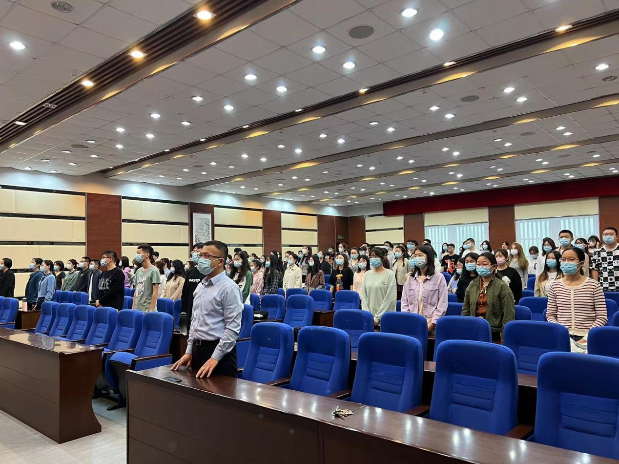 院组织2022级研究生在开学典礼分会场东荣大厦B310会议室观看开学典礼线上直播。探花
