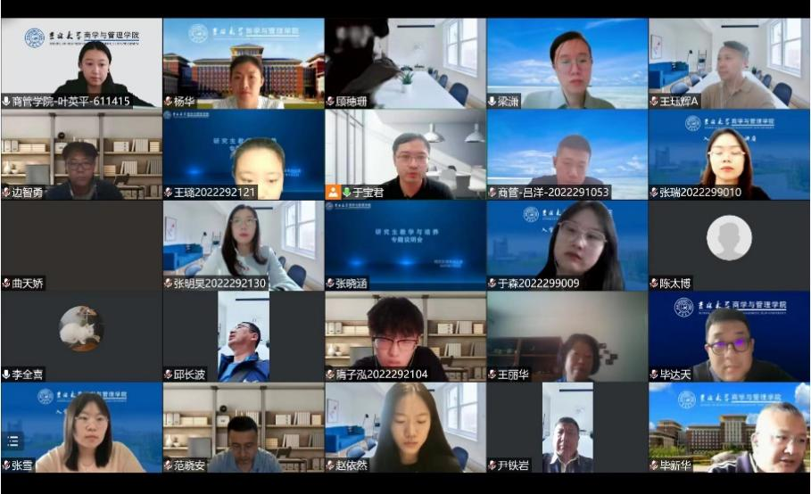 为了让老师及同学们更好地了解彼此,参加本次会议的24名同学逐一进行了自我介绍,并表明了在新学期、新征程中砥砺奋进的决心和态度,展现出吉大学子矢志前行的青春风采。管理科学与工程系的全体老师也逐一向新入学的2022级博士研究生和硕士研究生详细阐述了自己的教学与研究领域,并表达了对同学们的欢迎和期望。