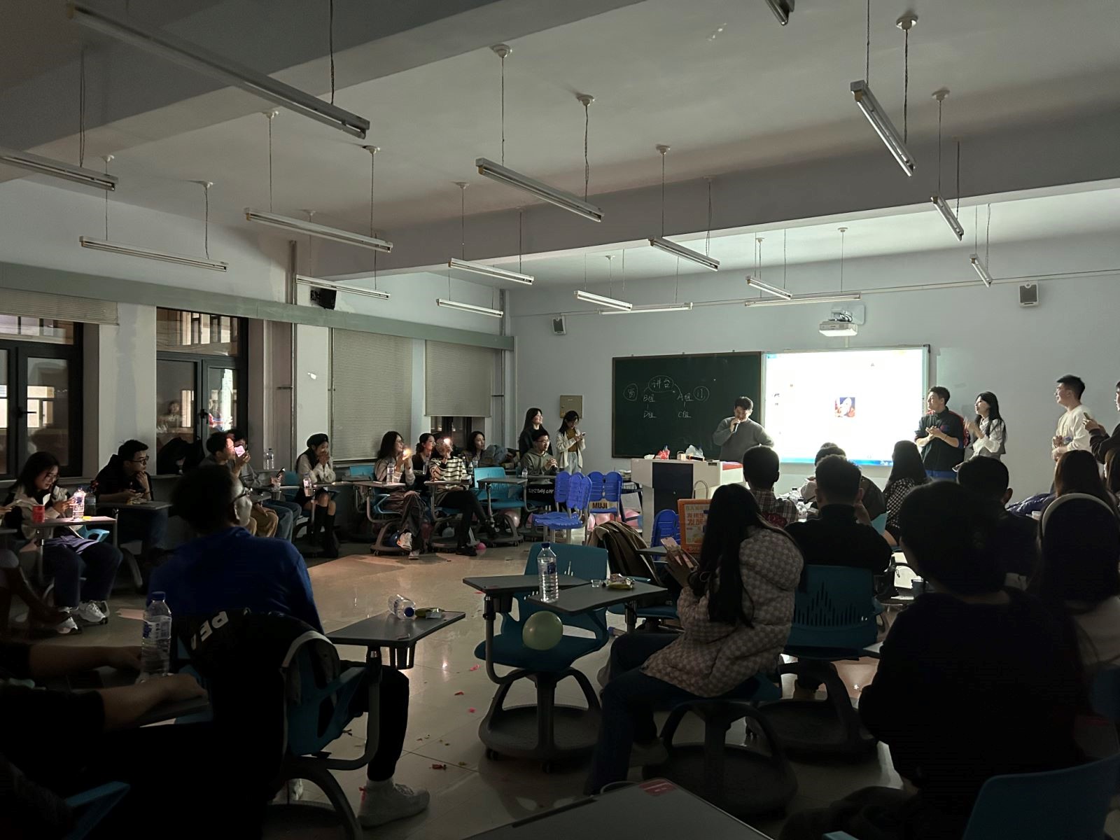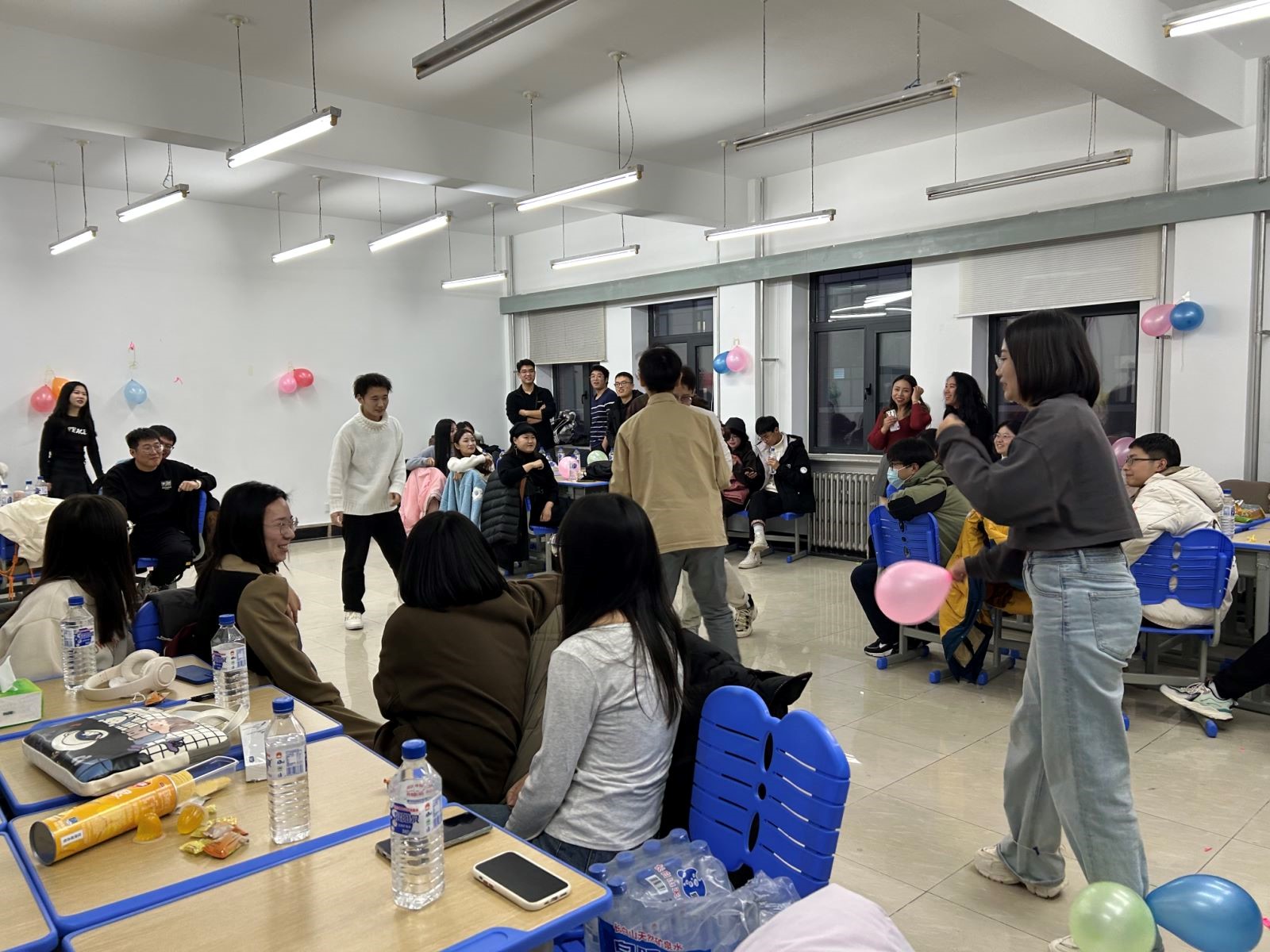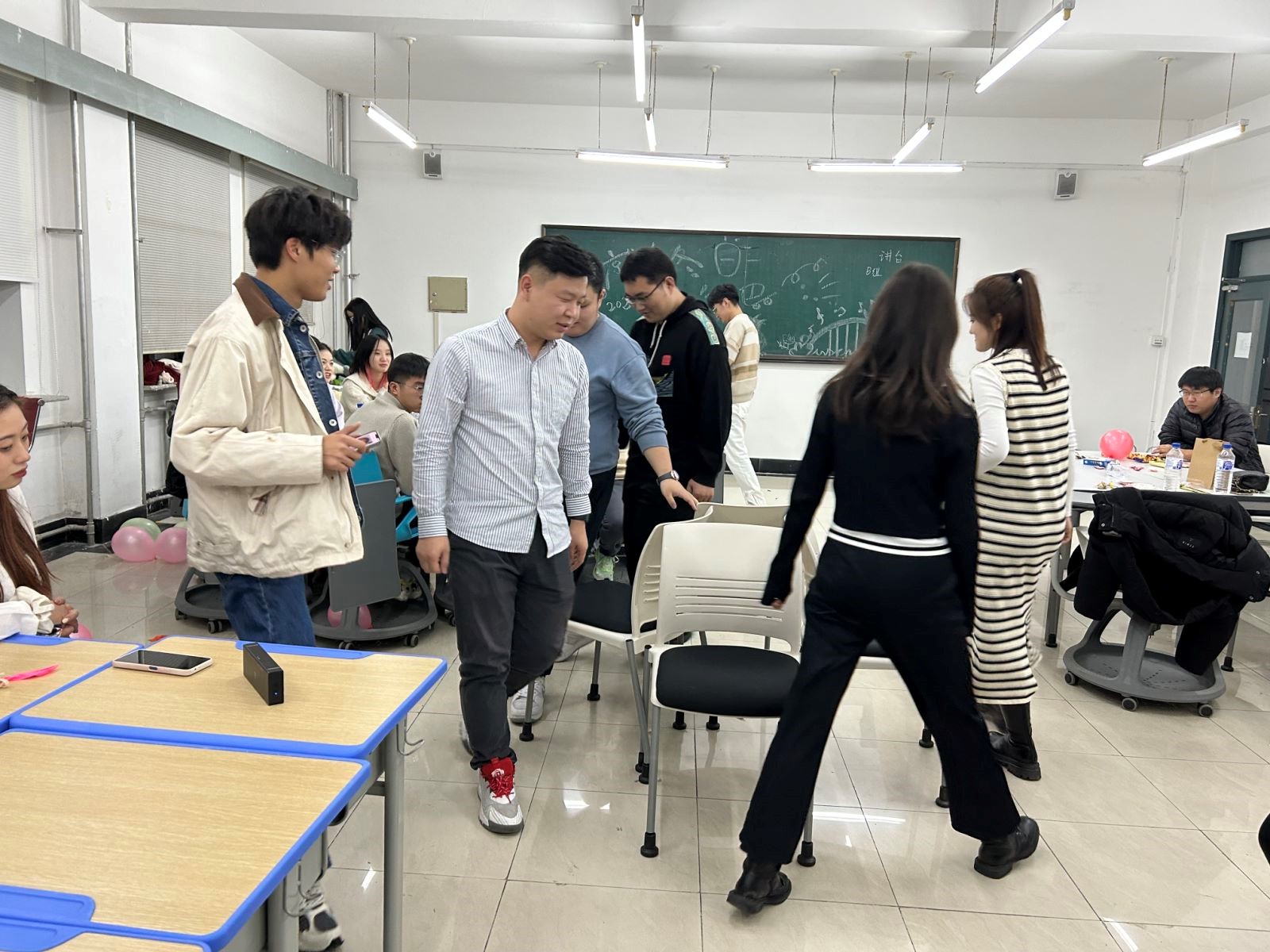 研究生40名。活动中,在主持人的引导下,通过破冰小游戏暖场,活动气氛快速升温,随后又进行了合力爆破踩气球、抢凳子以及自由交换礼物等环节,同学们在交谈中加深了解,在游戏中增进情感,现场欢声笑语不断,活动气氛温馨活泼、生动有趣。