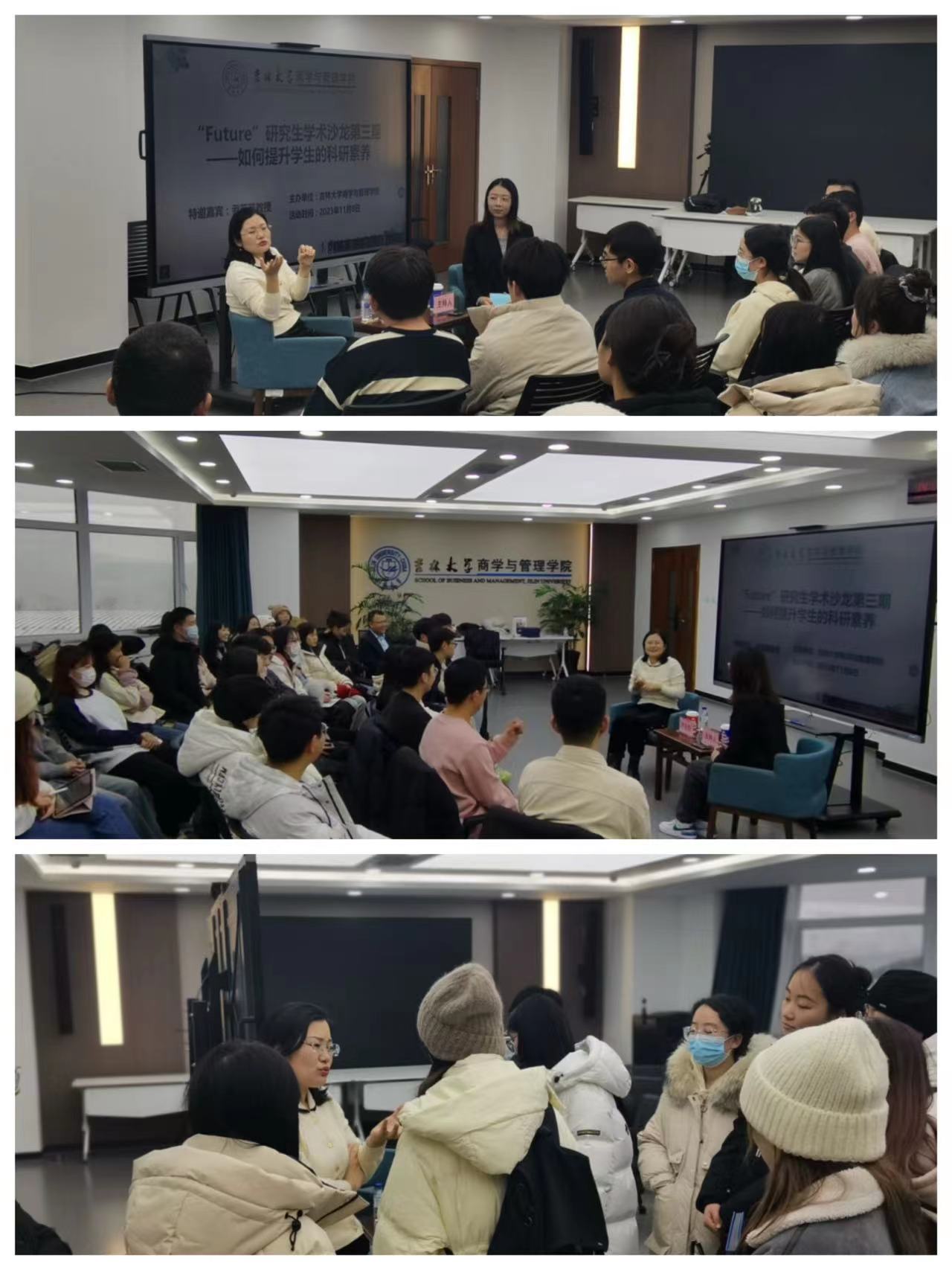 “匡亚明学者”领军教授B岗、商学与管理系学院技术经济系教授、博士生导师尹苗苗老师作为主讲嘉宾,围绕“如何提升学生的科研素养”与同学们展开讨论与分享。探花