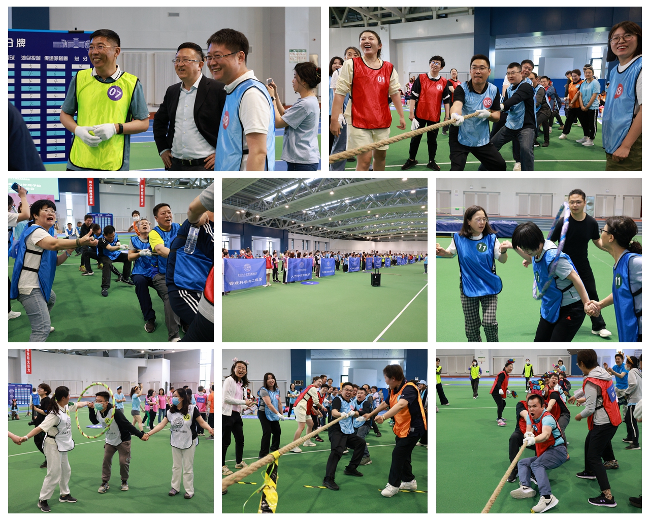 运动会设置了“力拔山河—拔河比赛”“争分夺秒—纸杯传球”“百发百中—沙包掷准”“一圈到底—传递呼啦圈”“勇往直前-跳绳接力”等五个项目,这些趣味性和体能素质均具有高度挑战性的项目使教职工们充分展现出了运动才华和团队精神。学院13个教学系代表队斗志昂扬,赛场上大家彼此了解、互相合作,让运动会成为了一次真正意义上的心灵融合之旅。随着校党委常委、副校长兼探花